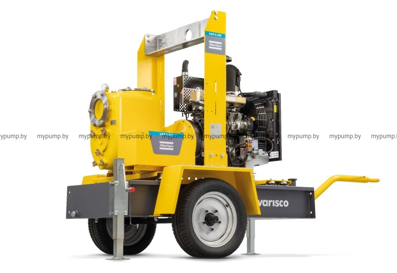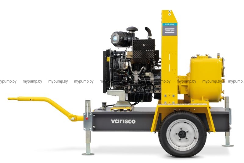 Самовсасывающая помпа с дизельным двигателем. Предназначена для работ по осушению объектов и отводу сточных вод с повышенным содержанием абразивных веществ. Производительностью по перекачке воды до 340 м3/ч, напор до 27.5 м.