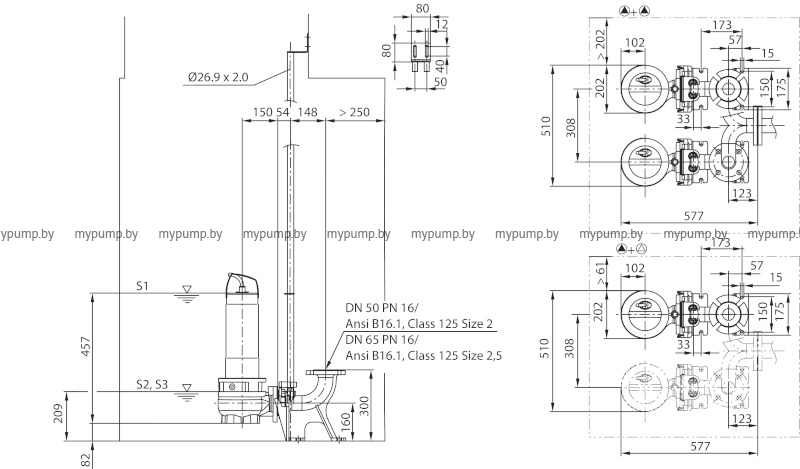 Погружной насос для отвода сточных вод для повторно-кратковременного режима эксплуатации, для стационарной и мобильной установки в погруженном и непогруженном состоянии.