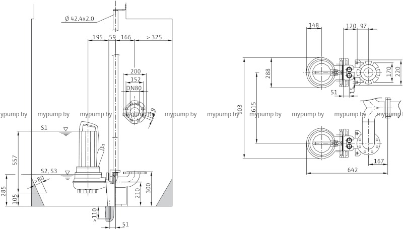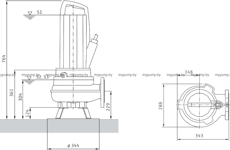 Погружной насос для отвода сточных вод для режима непрерывной эксплуатации, полностью из серого чугуна, для стационарной и мобильной установки в погруженном и непогруженном состоянии.