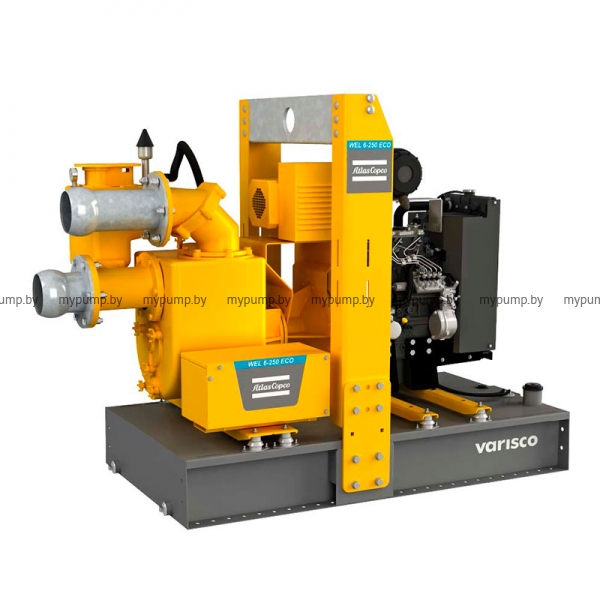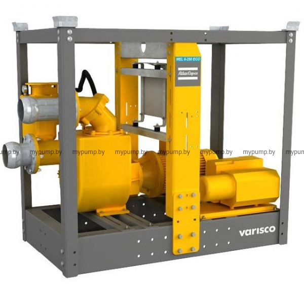 Установка водопонижения WEL ECO 4-250 пожеланию Заказчика может комплектоваться электрическим двигателем, а также иметь исполнение в базовой комплектации, на раме, на раме специально разработанной для тяжелых условий, на шасси и в открытом контейнере.