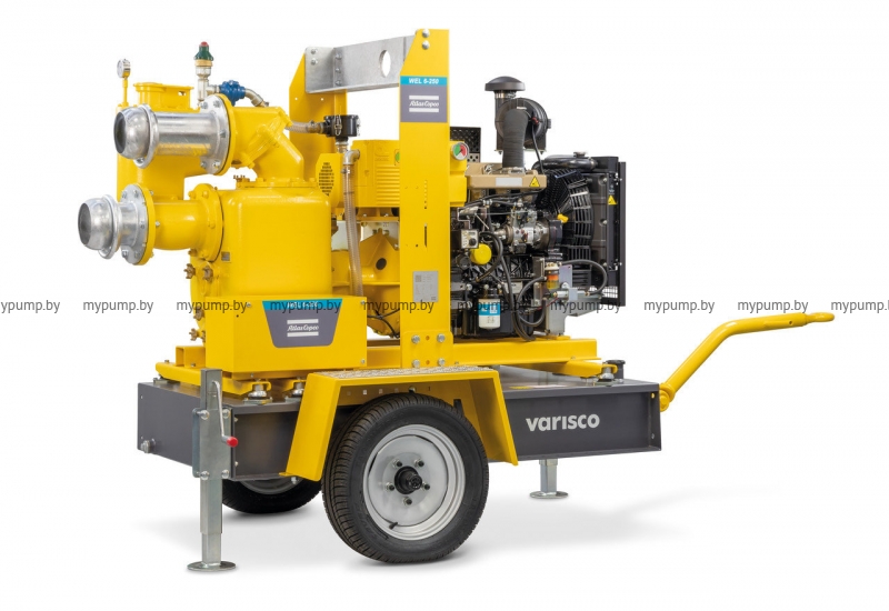 Самовсасывающая помпа с вакуумным насосом с дизельным двигателем для водопонижения иглофильтрами с производительностью по перекачке воды до 180 м3/ч, воздуха до 75 м3/ч, с напором до 32 м.